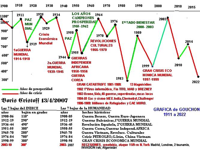 740º, la 2ª Guerra a 550º, las crisis de 1983 (SIDA, ozono, 48 guerras, fin eras