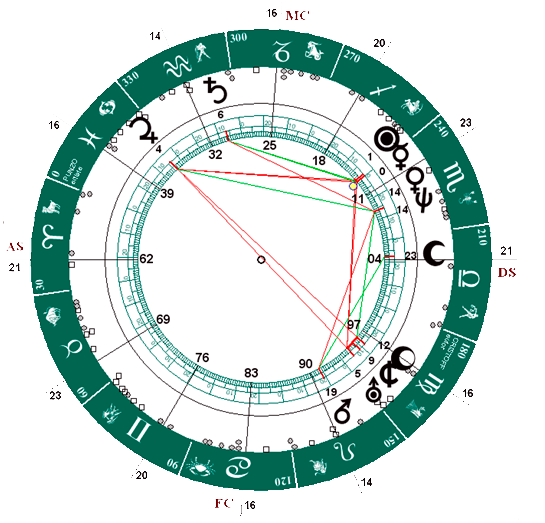 Tiene dos agrupaciones de planetas, una en Escorpio-Sagitario con 4
