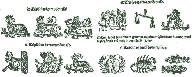 | Signos dibujados en Edad Media, ordenados en cuatro grupos por sus elementos: |