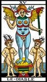 El arcano XV, El Diablo establece un puente y una incitación para adentrarnos hacia las profundidades de nuestro propio inconsciente. Remarcando dicha invitaciòn realiza el mudra: Nasikagra drishti, dirigiendo sus pupilas hacia el centro de la nari,z conduce su propia energía hacia las propias profundidades en estado de introspección. Este arcano además realiza otro mana mudra, sacando su lengua fuera sugiriendo con ello la expulsión de nuestros miedos profundos aquellos que mira con los ojos de su cuerpo.
