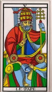 El arcano V, El Papa realiza un mudra con sus manos (hasta mudra) uniendo el dedo saturno(dedo corazón) relacionado con el deber, servicio y sentido comùn con el dedo jupiter (dedo índice) relacionado con las facilidades de mando y las capacidades de dirigir. Con este mudra, El Papa remarca su esencia de maestro, iniciador y guia. No es casualidad que dadas las características esencialmente racionales y prácticas del dedo jupiter, la mujer situada a la derecha en el arcano El Enamorado lo separe del resto de los dedos con los que toca el corazón del joven, como si quisiera indicar que para seguir al corazón hay que dejar de lado la razón.