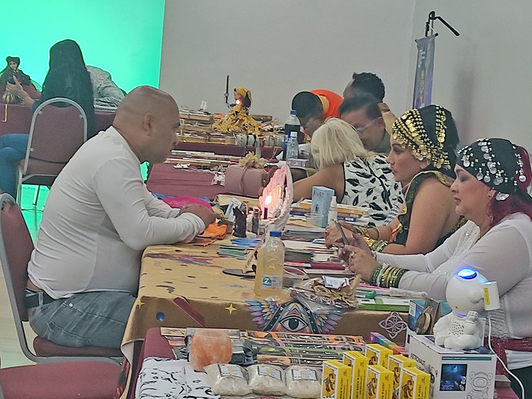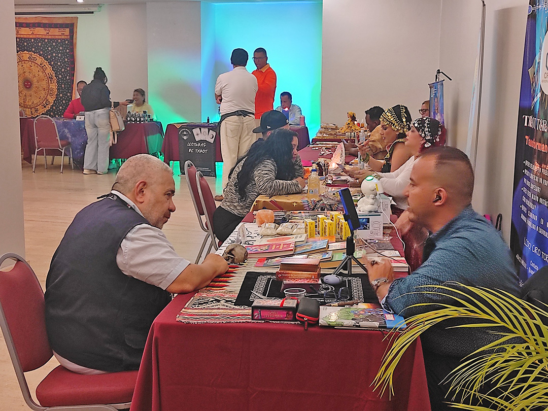 Mánticos atendiendo consultas en el «5to. Encuentro Nacional del Tarot 2025» en Caracas organizado por el «Centro Holístico Universo Internacional – Capitulo Venezuela el pasado domingo 17 de agosto.