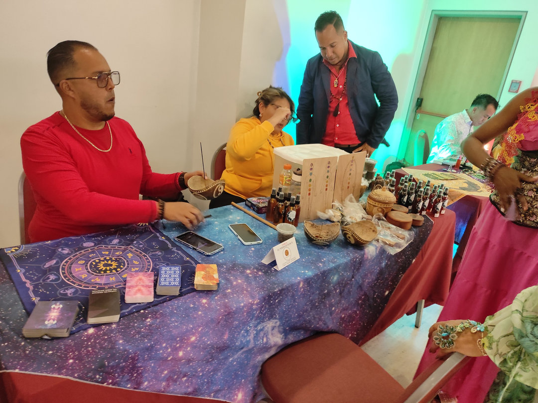 Expositores de artesanía esotérica en el 5to. Encuentro Nacional del Tarot 2025″ en Caracas organizado por el «Centro Holístico Universo Internacional – Capitulo Venezuela el pasado domingo 17 de agosto.