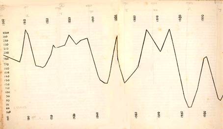 logró una serie de valores numéricos, que puestos en una gráfica con subidas y