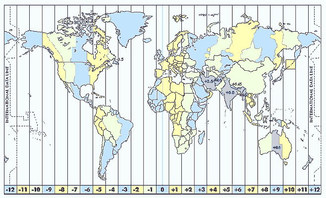 hora, siendo negativas hacia la izquierda y positivas a la derecha de Greenwich.