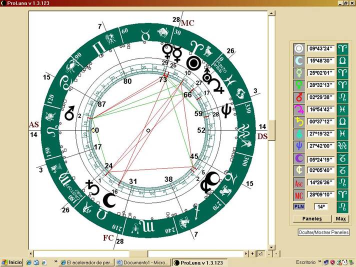 (arriba a la derecha) y el ascendente en 14º de Leo (a la izquierda neta) Ambos