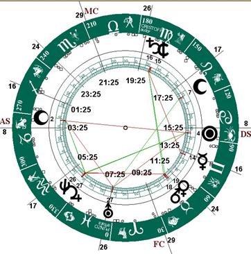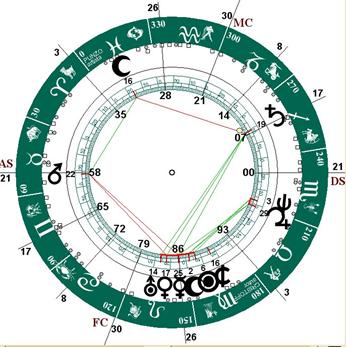 círculo central se aprecian los ASPECTOS con líneas verdes armónicas y rojas