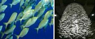 Cardumen suelto sin apuros y cardumen contraído en apuros