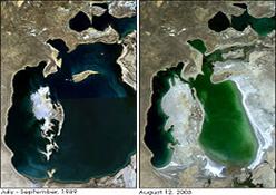 Mar de Aral en 1989 y lo que queda en 2003