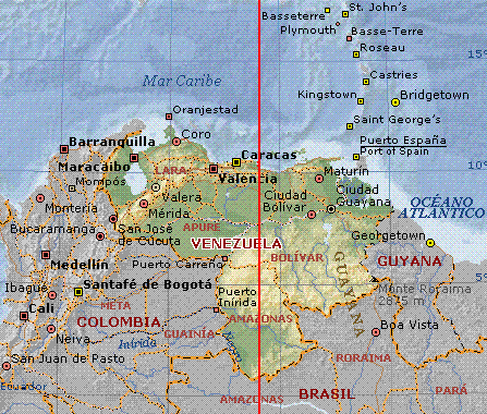 corresponde con la línea divisoria entre los Husos Horarios -4