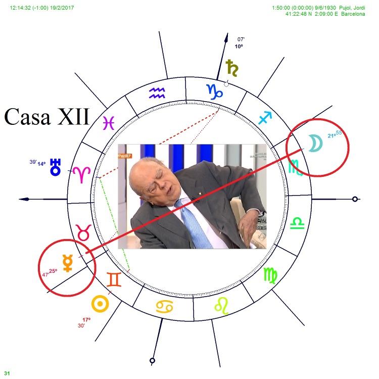 se localiza en Tauro en la Casa XII, junto a Saturno y el Infortunio,