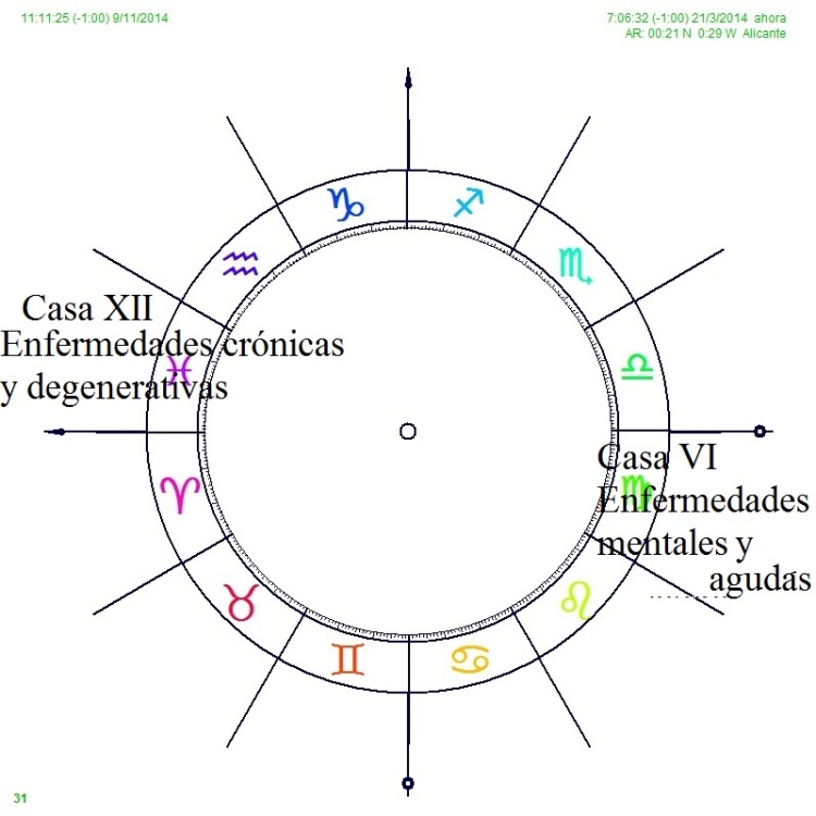 Las enfermedades, ¿En cuál sector de la carta del cielo de nacimiento se observan las enfermedades?