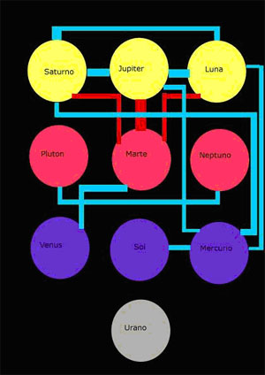 gráfica de las posiciones planetarias al nacer nos advertiría entonces del « terreno » del cual