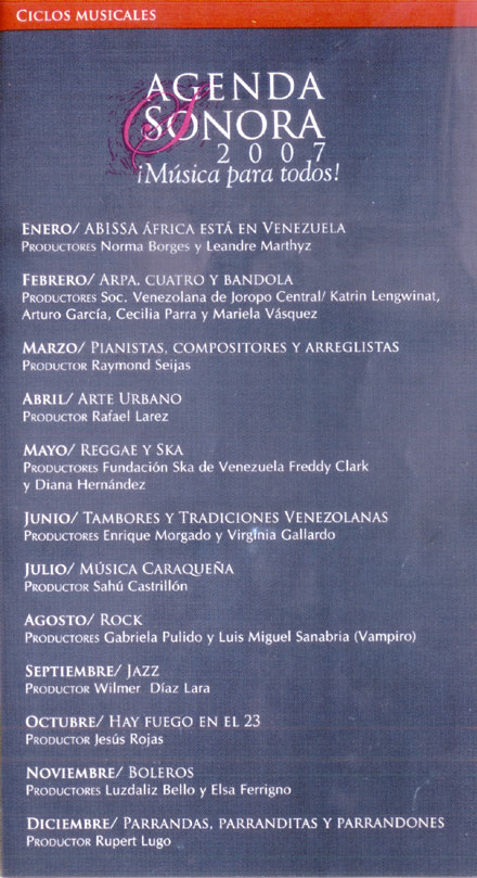Sonora 2007, Música para todos”, se trata de un cronograma bastante amplio, donde cupiesen distintos