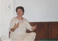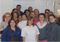 y Emilie juntos al grupo participante del taller de Iniciación al Psicocosmos e