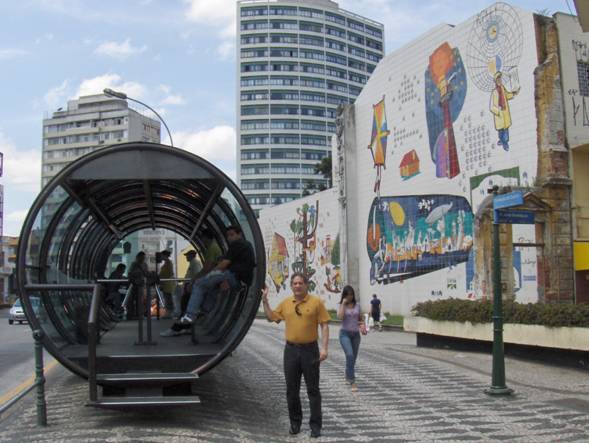 Parada del transporte Urbano, uno de los más eficientes de América. |